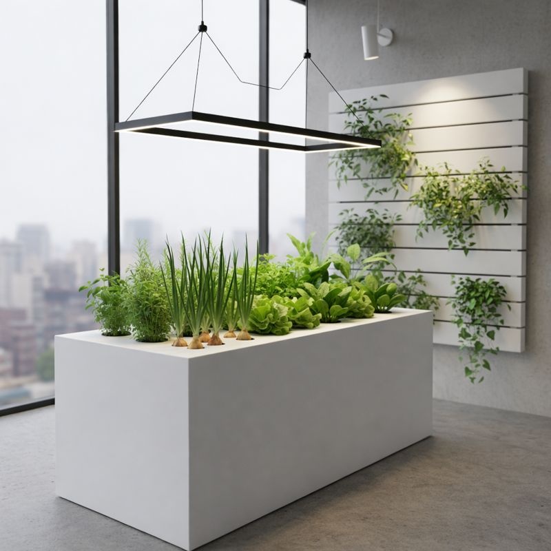 Plug-and-play system för inomhusodling av grönsaker och örter.